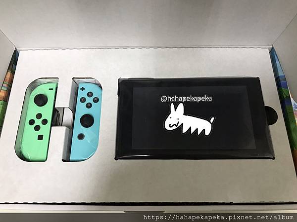 打開長這樣,動森機+可愛配色的joy-con❤️