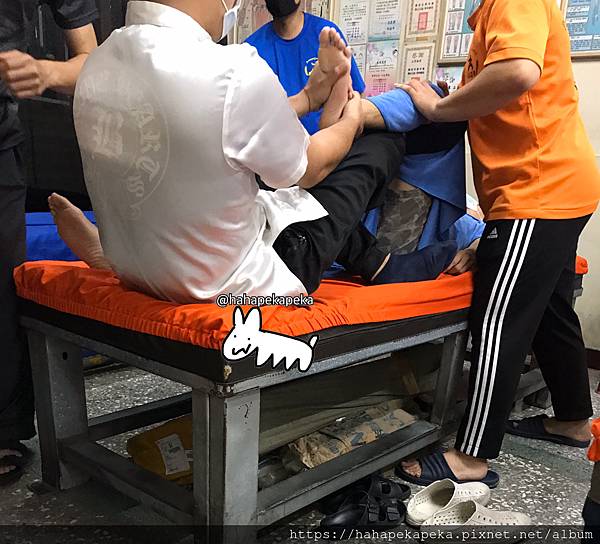 接著做各種拉腿啊,整骨的方式